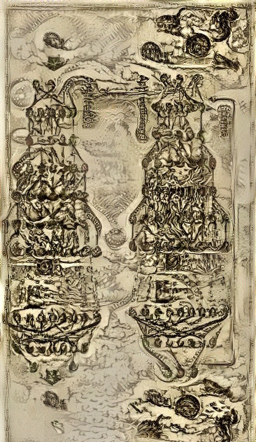 “Venus rising from the sea” or “Venus anadyomene” (from the ancient Greek ἀναδυομένη: “arisen upwards”) is a current artistic theme in Western painting, stemming from Greco-Roman mythology. An AI, trained in both art history and ancient languages, translated “anadyomene” as “bottom-up” and mixed Botticelli’s Birth of Venus with an anonymous meme, the “Dabbing Unicorn”, a form that emerged from the Internet in “bottom-up” mode, and has been massively shared, disseminated and diverted.