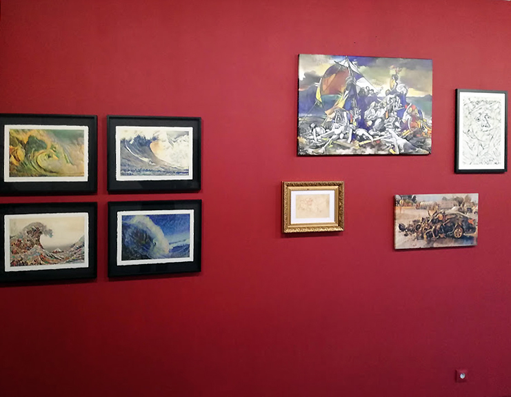 Le choix du mur rouge Pompéi faisait écho aux accrochages des salons académiques de la fin du XIXe siècle.