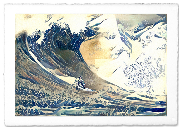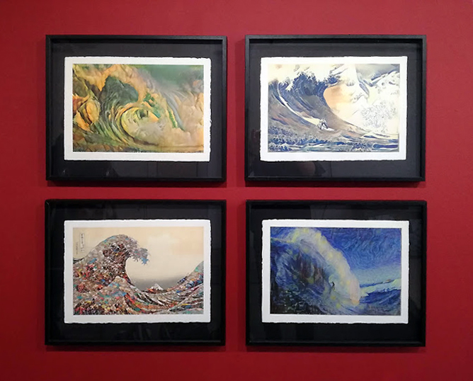 Dans la deuxième moitié du XIXe siècle, des peintres comme Claude Monet ou Félix Bracquemond découvraient dans les marchés et les grands magasins, au Havre ou à Paris, des objets provenant du Japon, enveloppés dans des estampes d’artistes anonymes de l’Empire du Soleil Levant. Ce sont ces emballages, plus que les “japonaiseries”, qui ont en partie influencé ces peintres et bien d’autres (tels Degas, Manet ou Van Gogh), au point de revisiter les codes de la peinture occidentale. Plus de 150 ans après la révolution industrielle et la rupture avec l’académisme, cette source d’inspiration a-t-elle influencé à son tour l’esthétique du réseau de neurones nourri d’histoire de l’art ? The Great Garbage Wave remixe la Grande Vague de Kanagawa d’Hokusai (1831), avec d’innombrables emballages provenant du Great Pacific Garbage Patch, le “septième continent de plastique”. Alors que les civilisations urbanisées post-industrielles produisent des taux exponentiels de déchets, n’est-ce pas un juste retour des choses qu’une machine s’imprègne de la collapsologie ambiante pour déconstruire – désemballer pourrait-on dire – un petit bout de notre histoire moderne ?