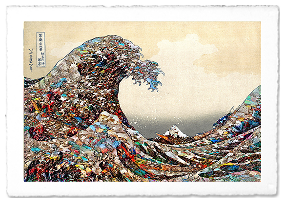 In the second half of the 19th century, painters like Claude Monet or Félix Bracquemond discovered in the markets and department stores, in Le Havre or in Paris, objects from Japan wrapped in prints by anonymous artists of the Land of the Rising Sun. It is this packaging, more than the “Japanese curio”, which partly influenced these painters and many others (such as Degas, Manet or Van Gogh), to the point of revisiting the codes of Western painting. More than 150 years after the industrial revolution and the break with academicism, has this source of inspiration in turn influenced the aesthetics of the neural network nourished by art history? The Great Garbage Wave is a remix of Hokusai’s Great Wave off Kanagawa (1831), with countless wrappers from the Great Pacific Garbage Patch, the “seventh plastic continent”. While post-industrial urbanized civilizations produce exponential rates of waste, isn’t it a fair return for a machine to soak up the ambient collapsology to deconstruct – unpack you might say – a little piece of our modern history?