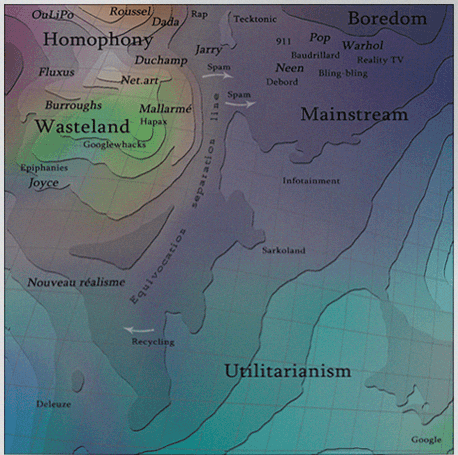 Inspired by the work of the French writer Raymond Roussel, the project is a satire about the transmutation of language into a global market ruled by Google et al.